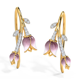 Diamond earrings, 18KT yellow gold jewellery-tulip diamond drop