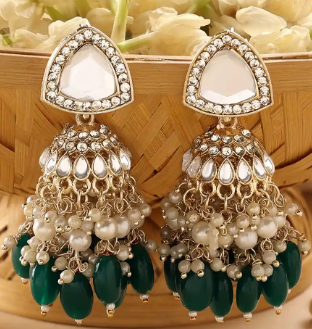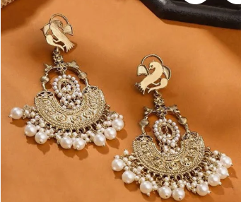 Yellow chimes ethnic gold plated chandbali dangler earring.