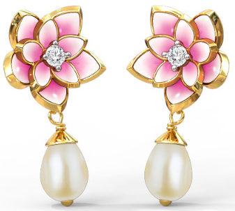 Pearl earrings with diamond 18Kt gold plated lotus pearl drop