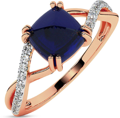 Synthetic sapphire ring with diamond(0.1 ct,FG-SI),14 KT rose